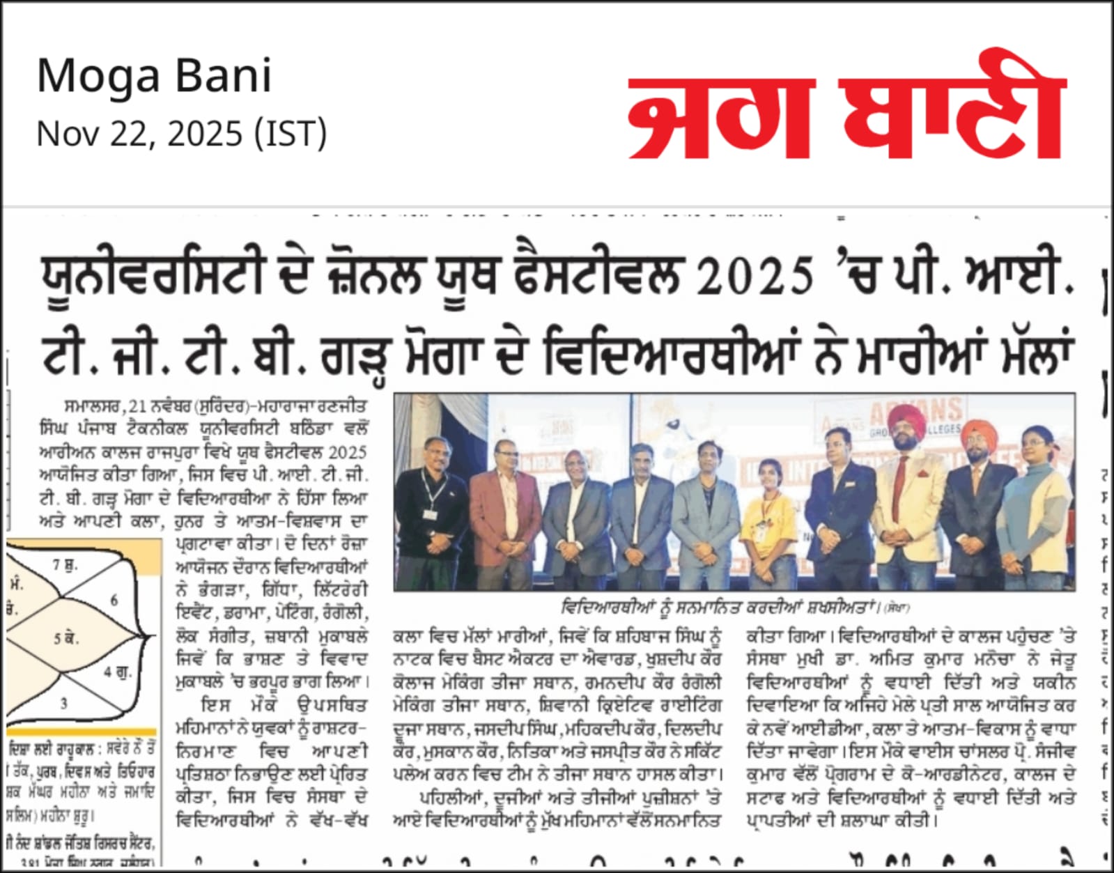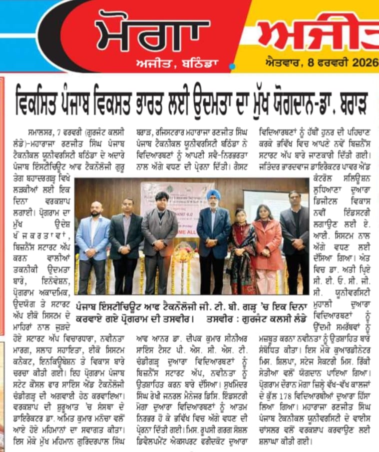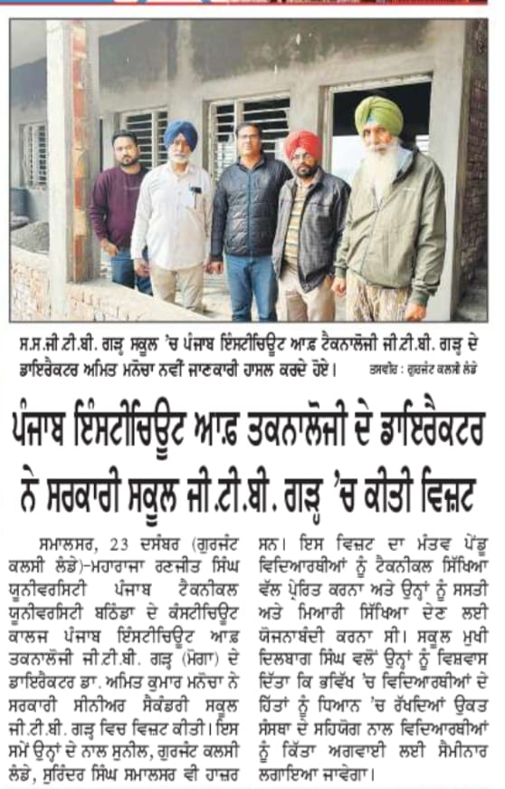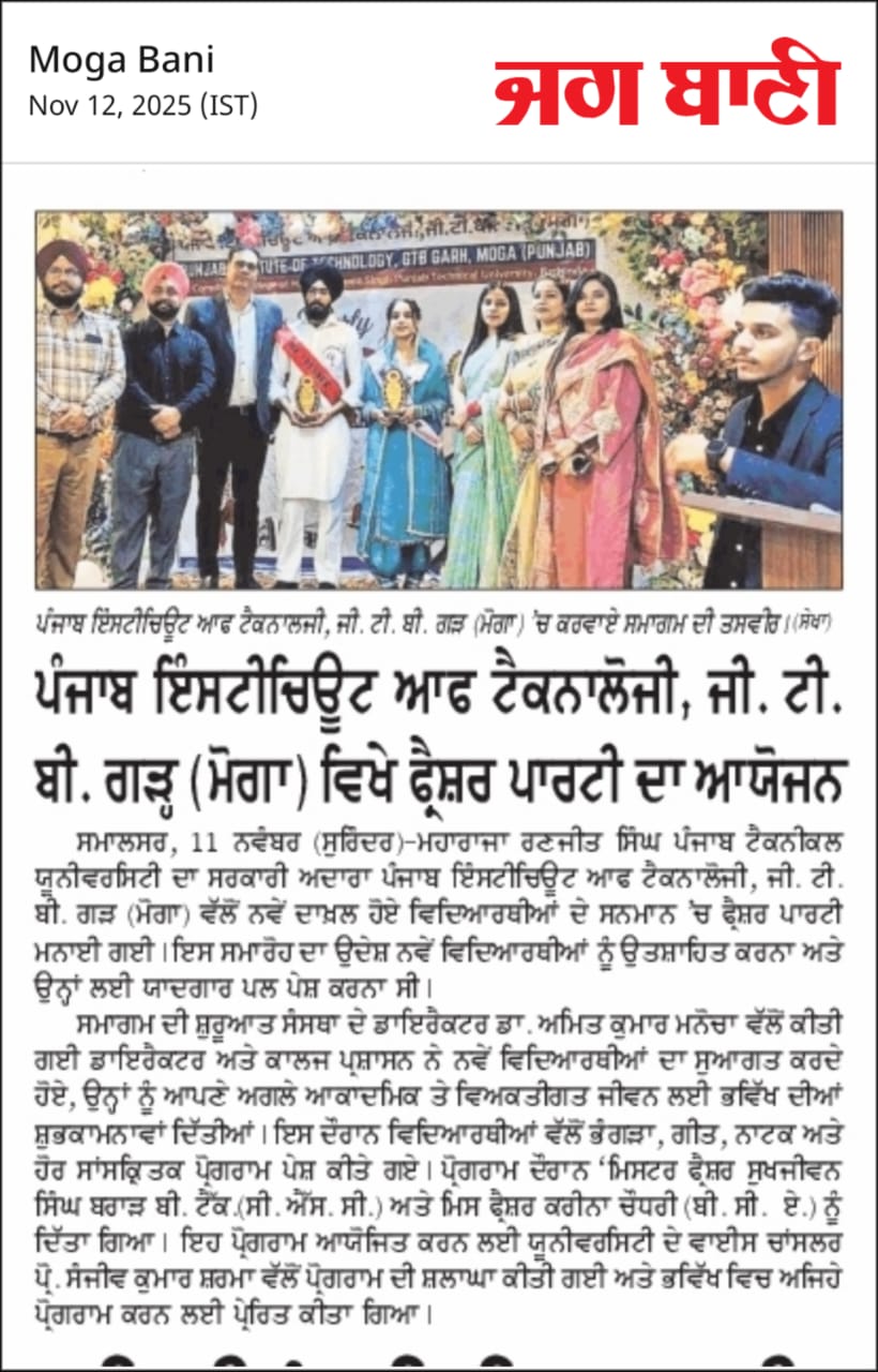 | 26-12-2025 | Awareness campaign regarding courses being conducted by Punjab Institute of Technology,GTB Garh(Moga). | Jagbani, Punjab Jagran, Punjab Kesri |