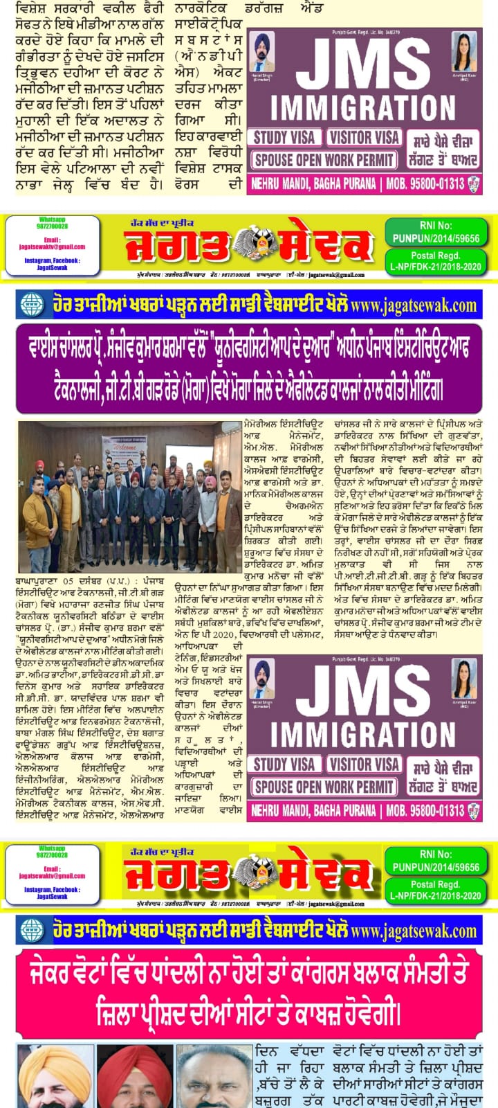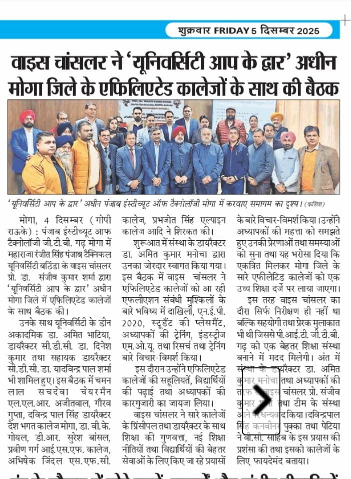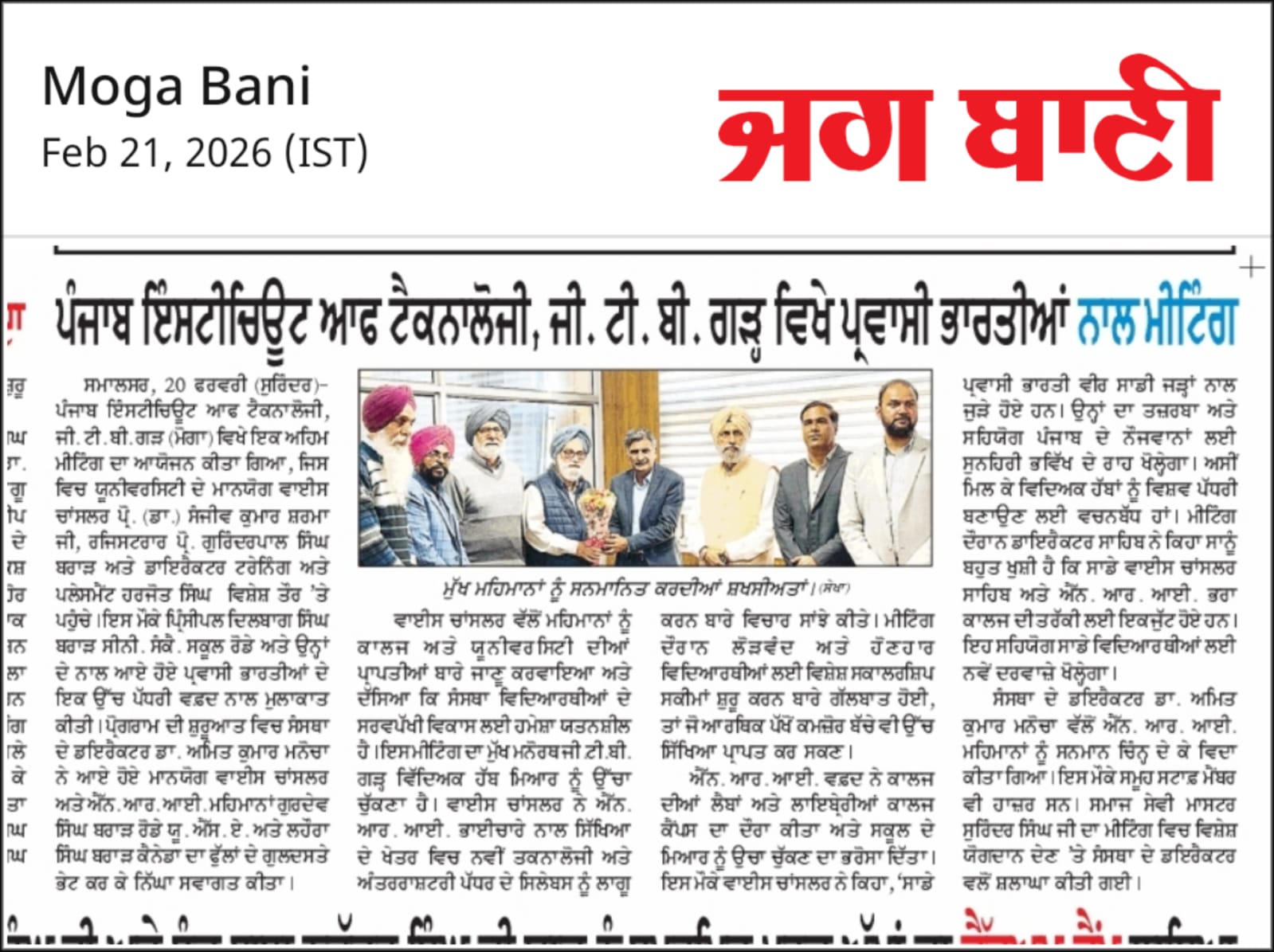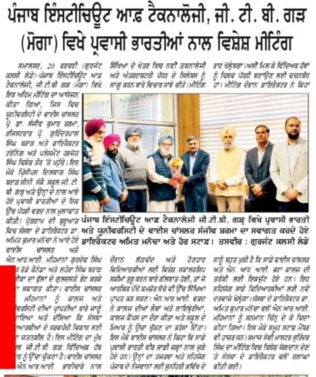 | 19-02-2026 | Meeting with NRIs at Punjab Institute of Technology GTB Garh(Moga) | Jagbani, Ajit News |