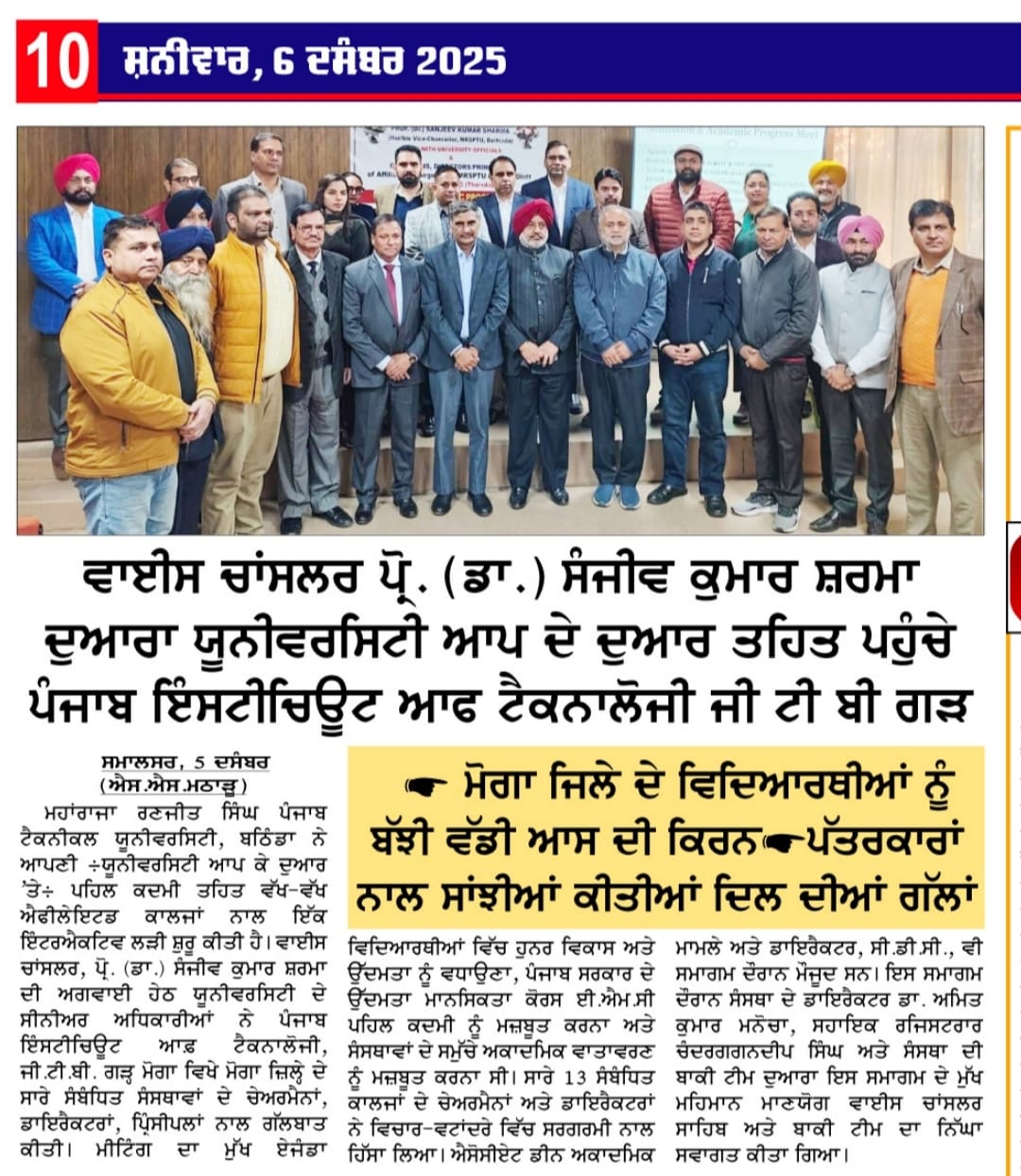 | 4-12-2025 | Media coverage of “University at Your Doorstep” initiative. | Jagbani, Punjab Jagran, Jagat Sewak Punjab Kesri -- |
