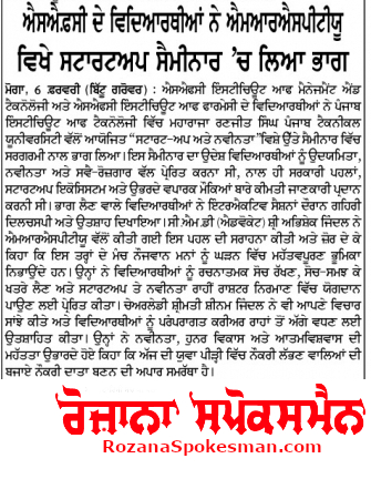 | 6-02-2026 | Media coverage of "Tech Startup Connect & Grow (TSCG) Workshop under SHE Cohort 4.0 Program" | Jagbani, Rozana Spokesman, Ajit News |
