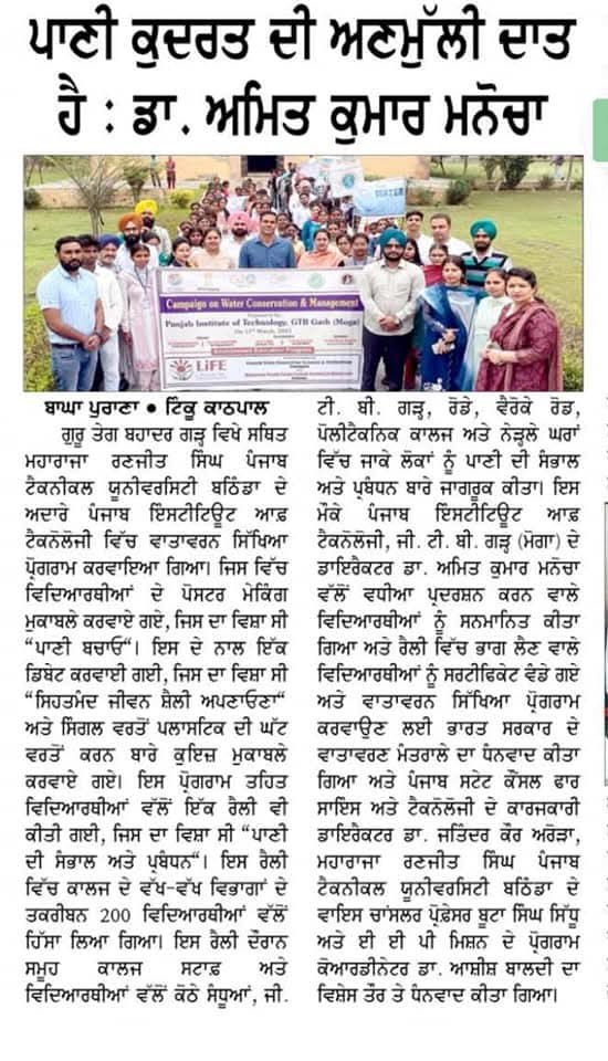 | 18-03-2023 | Media coverage of activities organised under LiFE. | Ajit News Jag Bani |